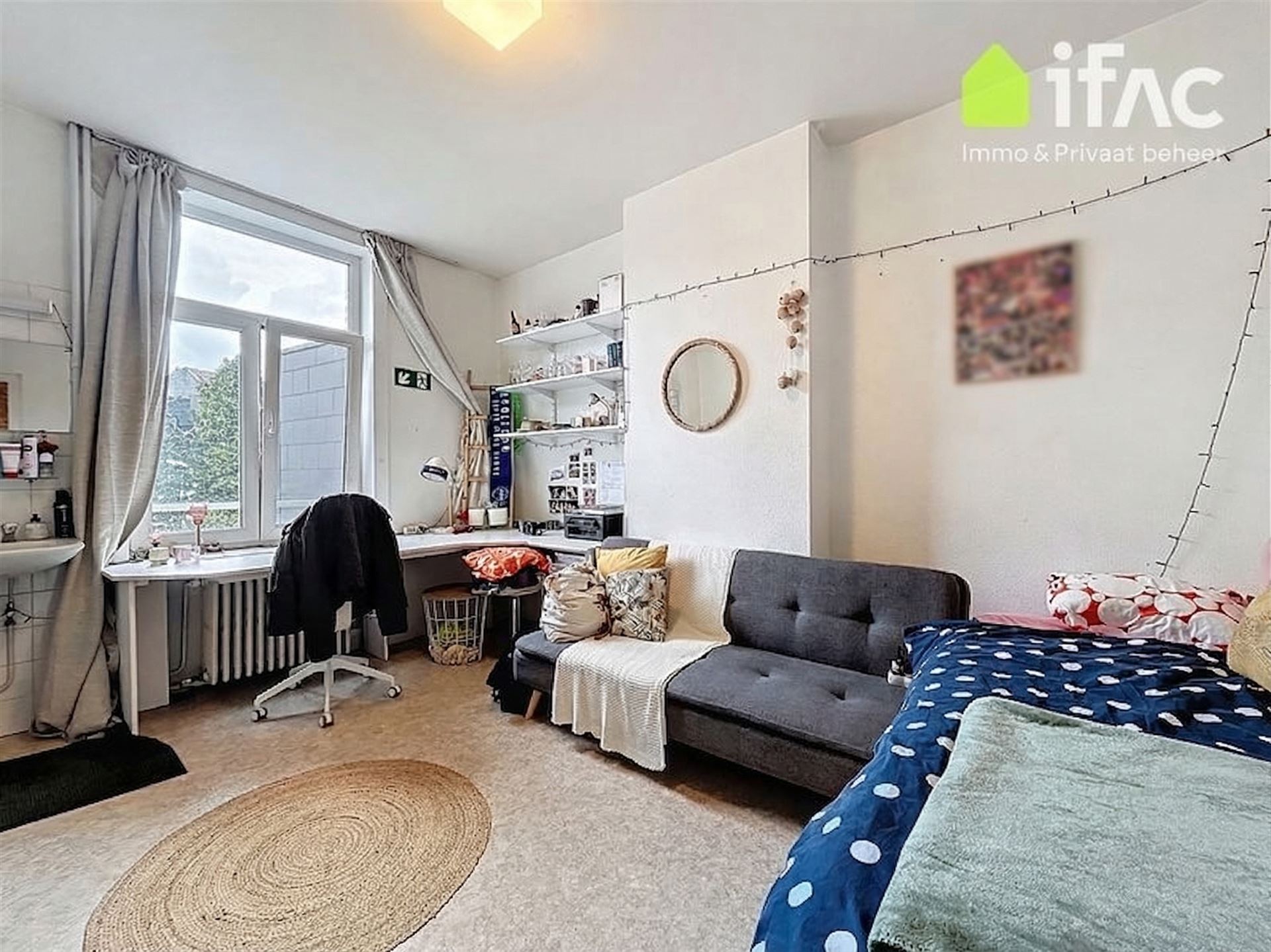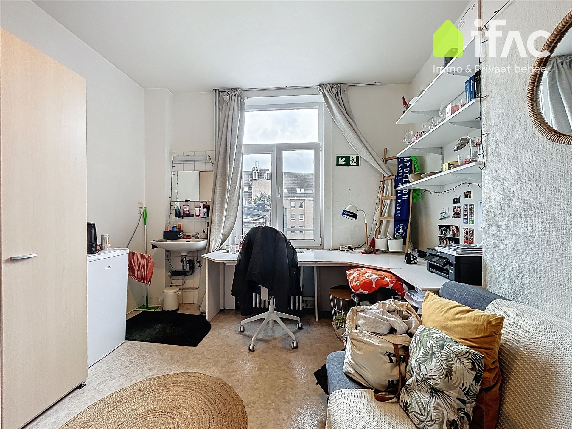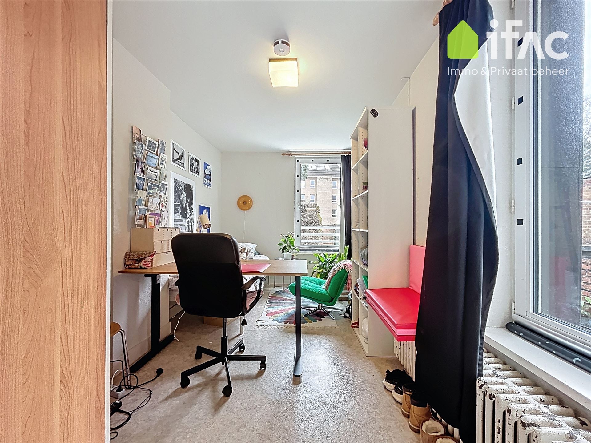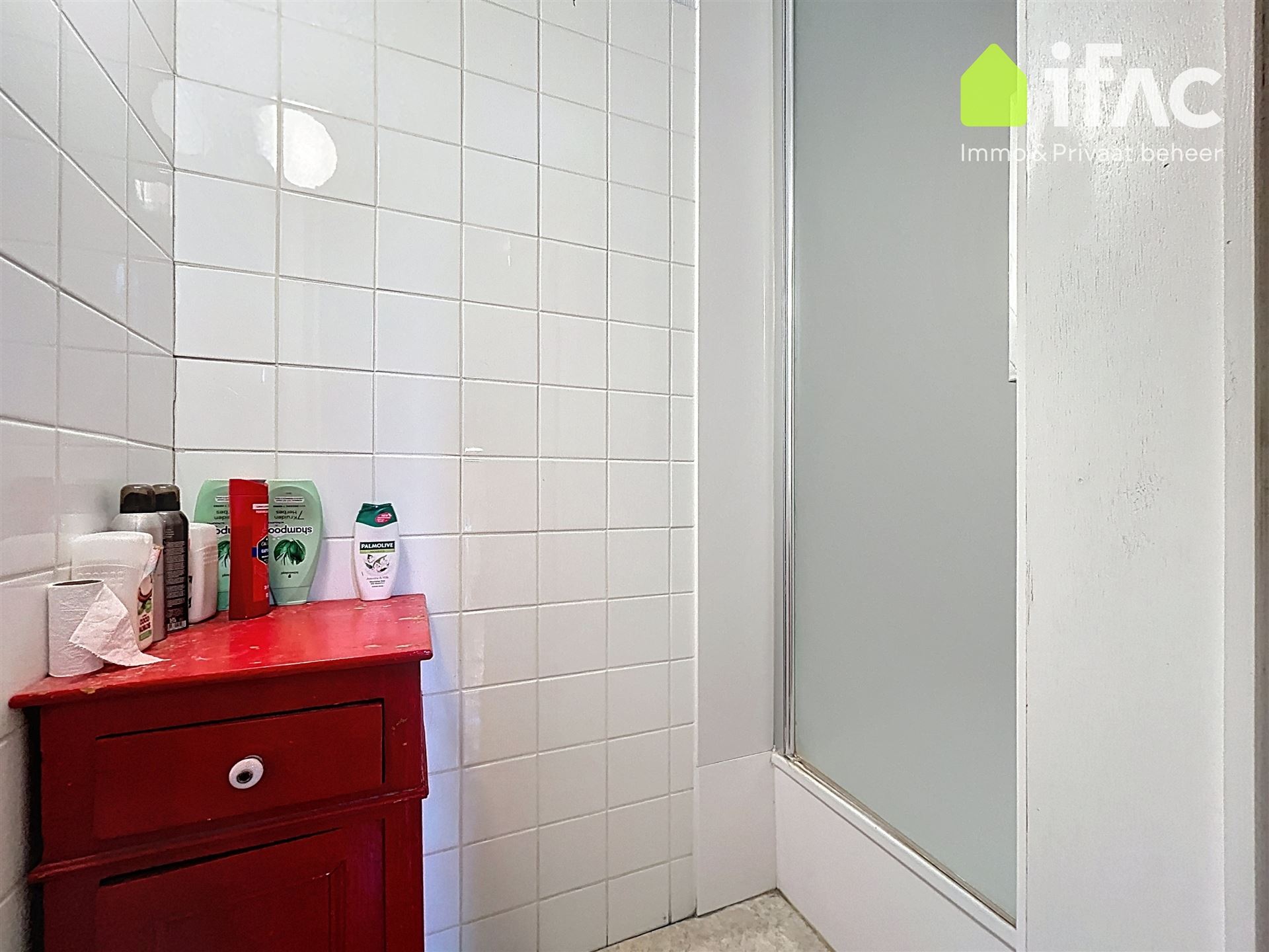 Second floor: spacious common sitting room with cooking facilities (+/- 13m²), 2 studios of +/-14,7m² and 16m², shower room (+/- 2m²), separate toilet.