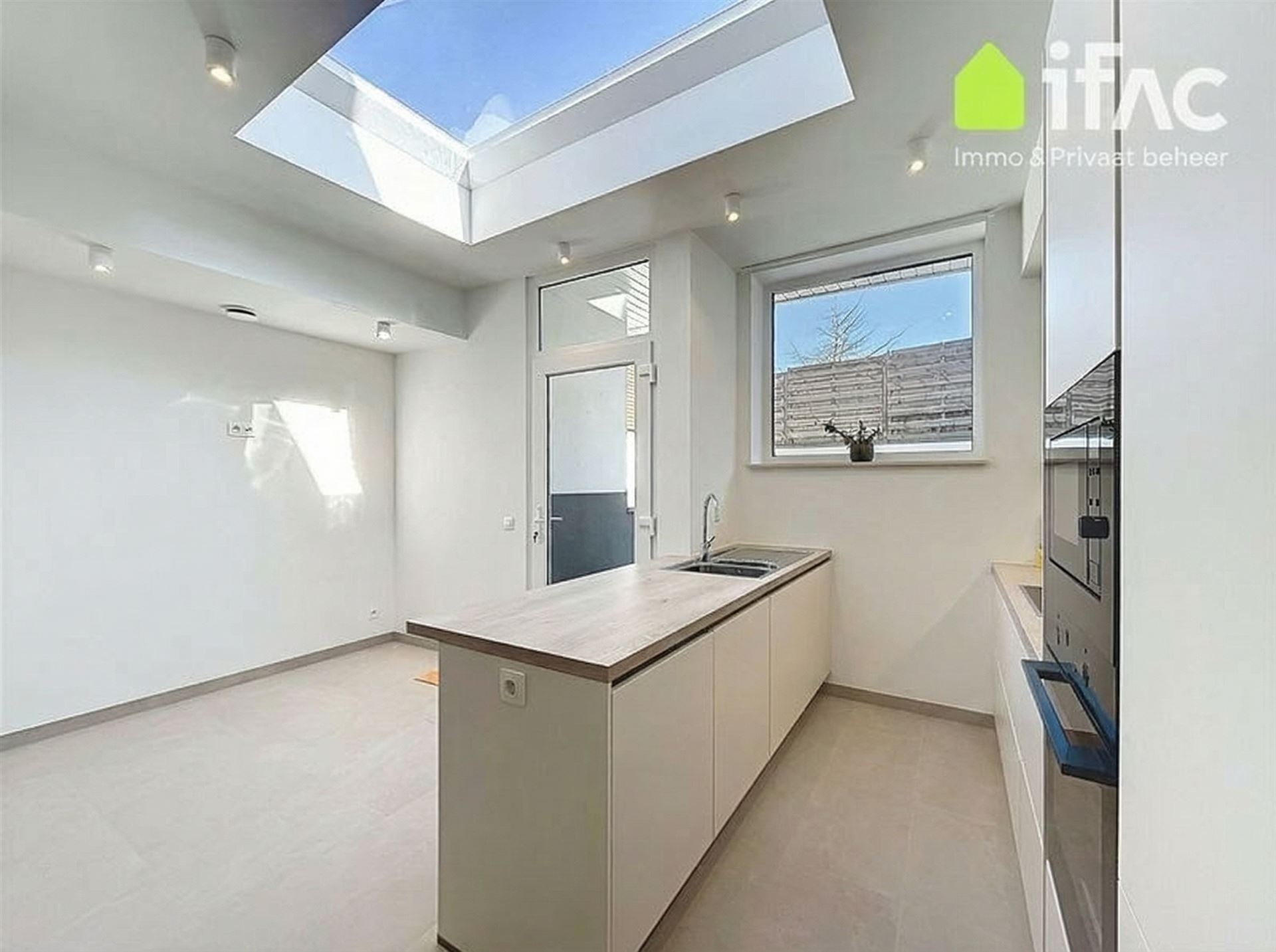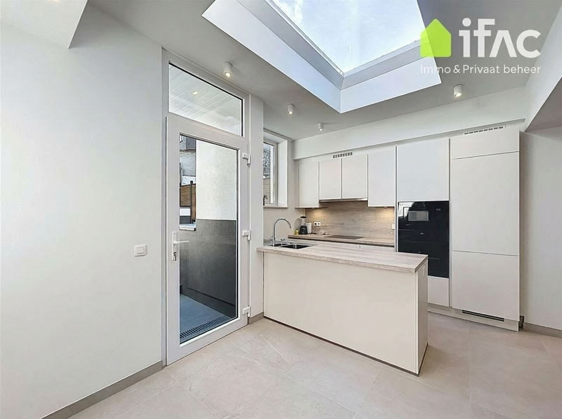 Dankzij de lichtkoepel geniet de ruimte veel lichtinval. Aansluitend bevindt zich een zonnig terras van 30 m².