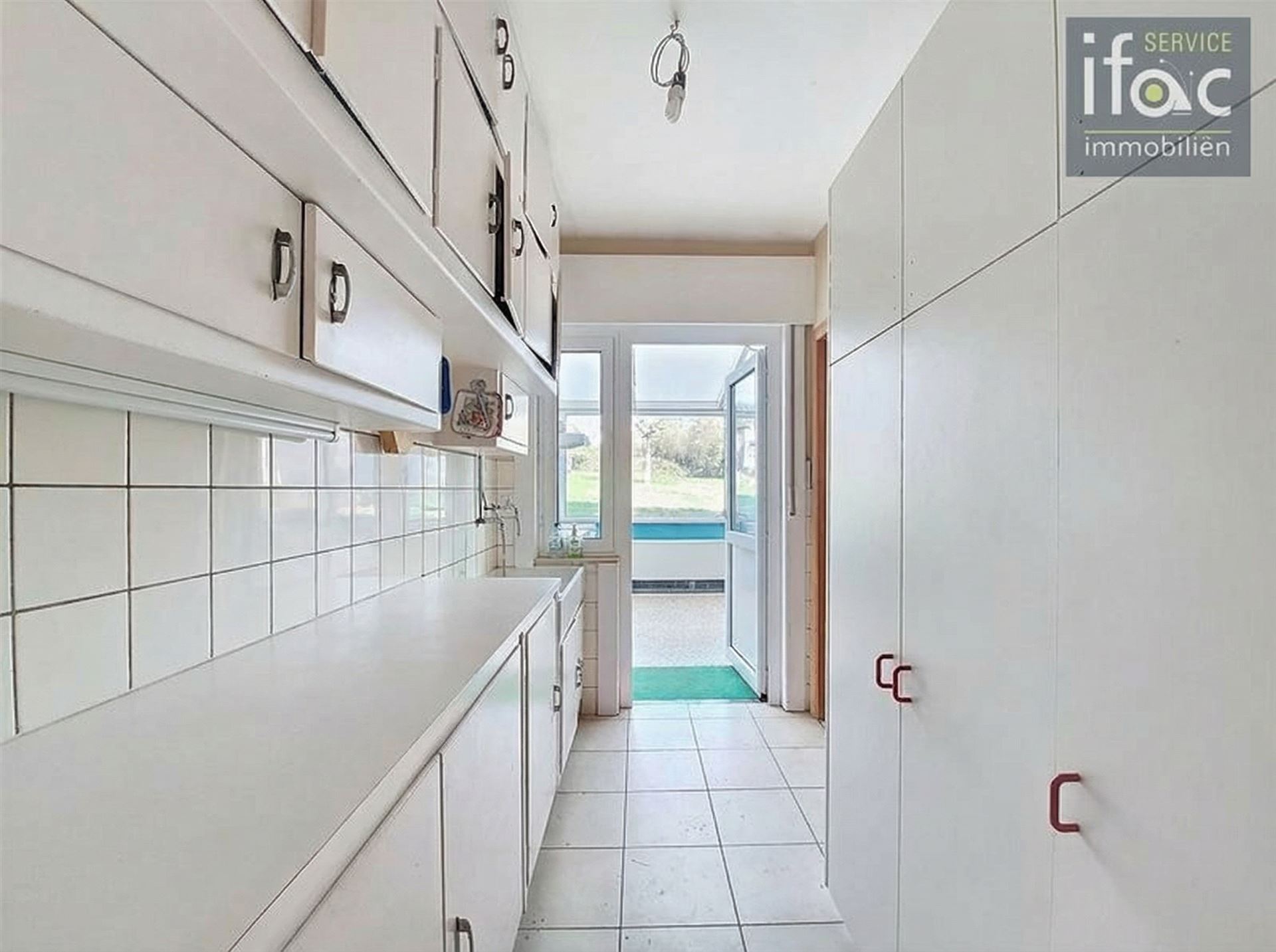 Ground floor: Entrance hall with new staircase, bright living room of ±28 m², semi-equipped kitchen of ±5 m² and adjoining veranda of ±19 m². From the veranda, there is direct access to the covered terrace and the fantastic deep garden. In the garden, there is an old workshop of ±30 m² with attic space (to be emptied by the buyer).